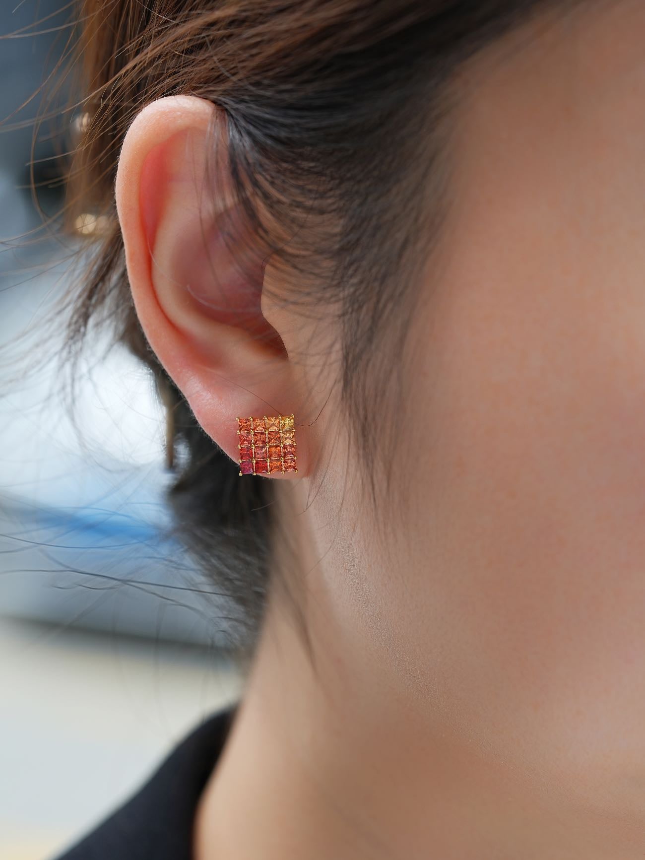 Crafted from 18k gold, these custom natural gem stone sapphire oil painting earrings are a unique and sophisticated addition to your jewelry collection. The vibrant sapphire stones provide a pop of color, while the oil painting texture adds a touch of elegance. Perfect for enhancing any outfit with a touch of luxury.