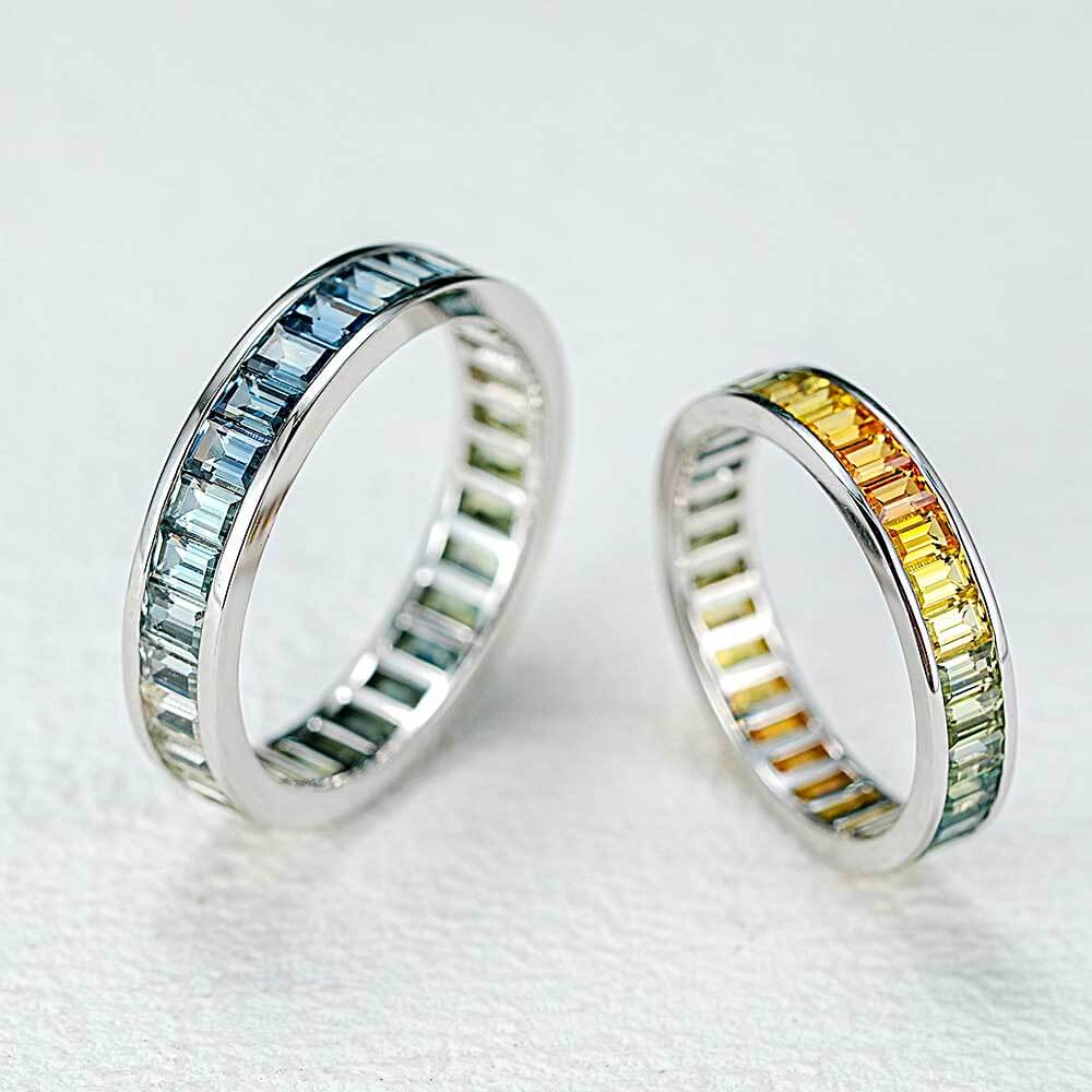 Add some daring color to your love with our Solid Gold Colorful Rainbow Sapphire Couple Ring! This bold and adventurous piece features a stunning array of rainbow sapphires set in solid gold. Embrace the thrill of taking risks and make a statement with this unique and vibrant couple's ring.