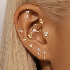 Zircon Tassel Flat Back Earring - S925 Sterling Silver Gold Niche Design Cartilage Jewelry