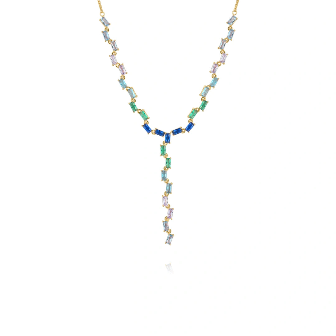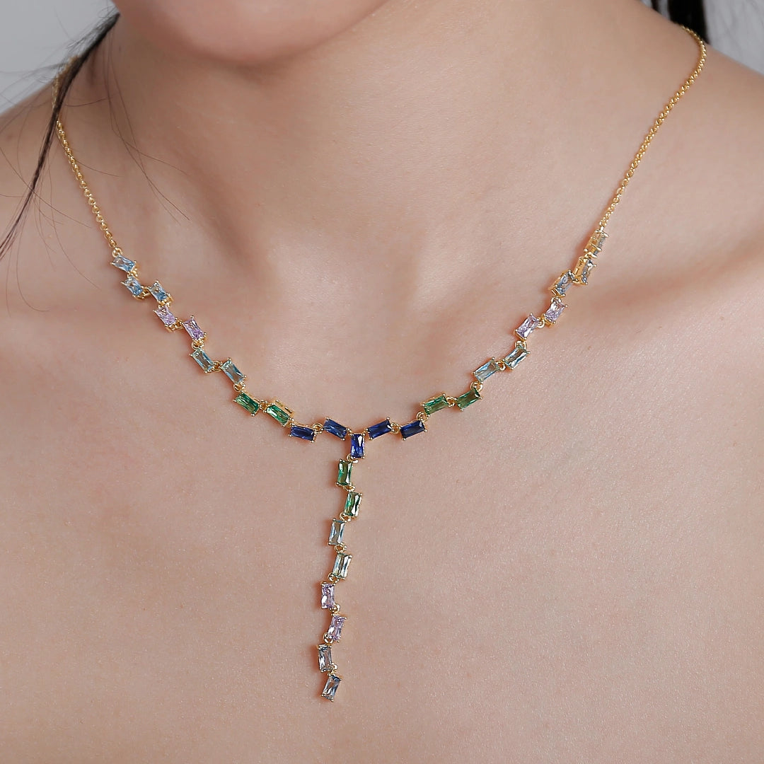 18K Gold Emerald Cut Small Smile Necklace