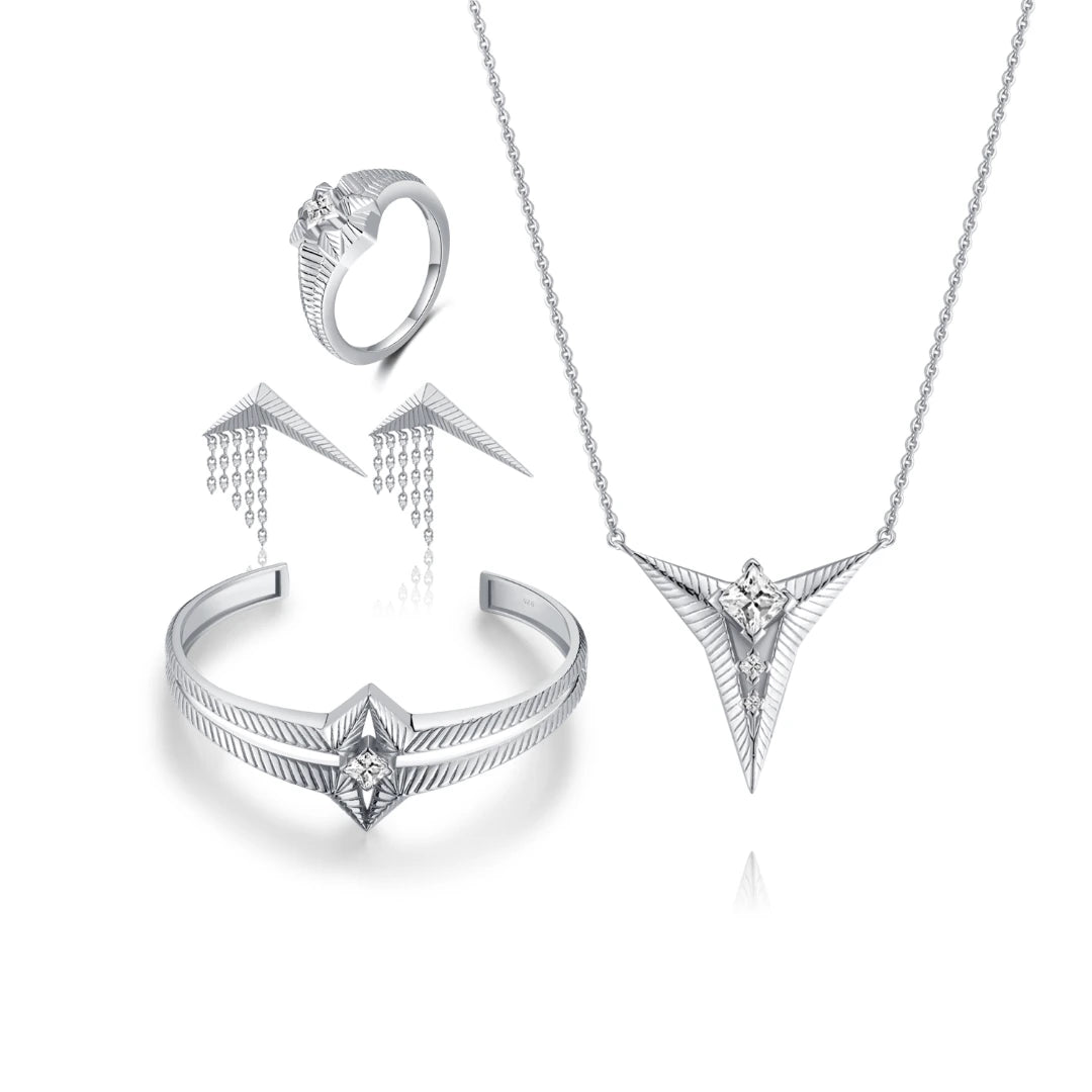 "떨어지는 별" 컬렉션은 우리가 살고 있는 우주와 우리를 둘러싸고 있는 수십억 개의 별에서 영감을 얻었지만, 떨어지는 별을 잡을 때 소원을 이루는 데는 단 하나의 떨어지는 별이 필요합니다...그 소원은 당신의 꿈, 당신이 원하는 것 믿다, 욕망. "떨어지는 별" 보석은 항상 당신의 꿈에 대한 믿음을 멈추지 않도록 상기시켜줄 것입니다.