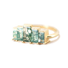 Embrace the nature-inspired jewelry trend with our ring, a stunning, art deco-inspired masterpiece. Custom-cut baguette moss agate gemstones adorn this exquisite piece, complemented by an optional lace band available for purchase separately to complete the enchanting engagement ring set.